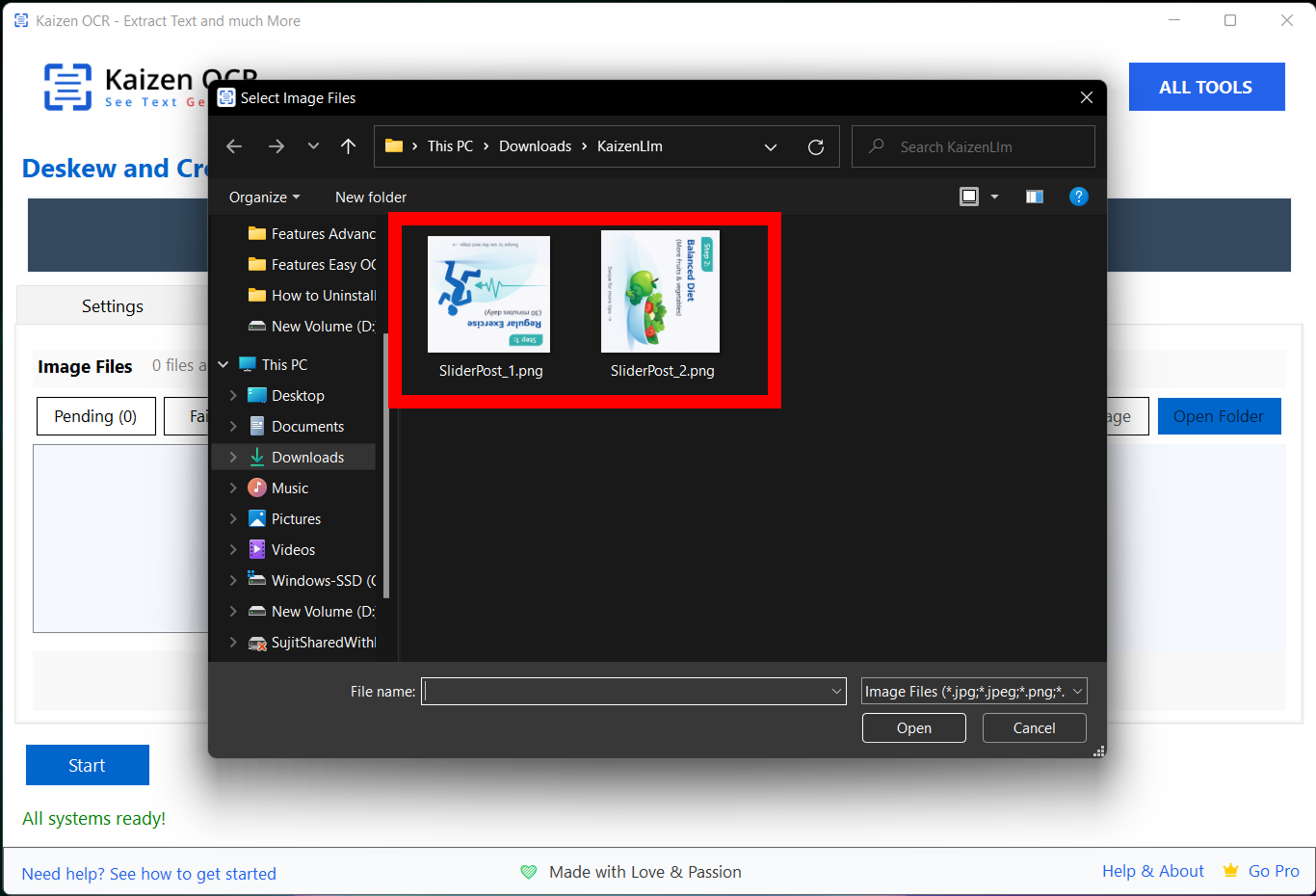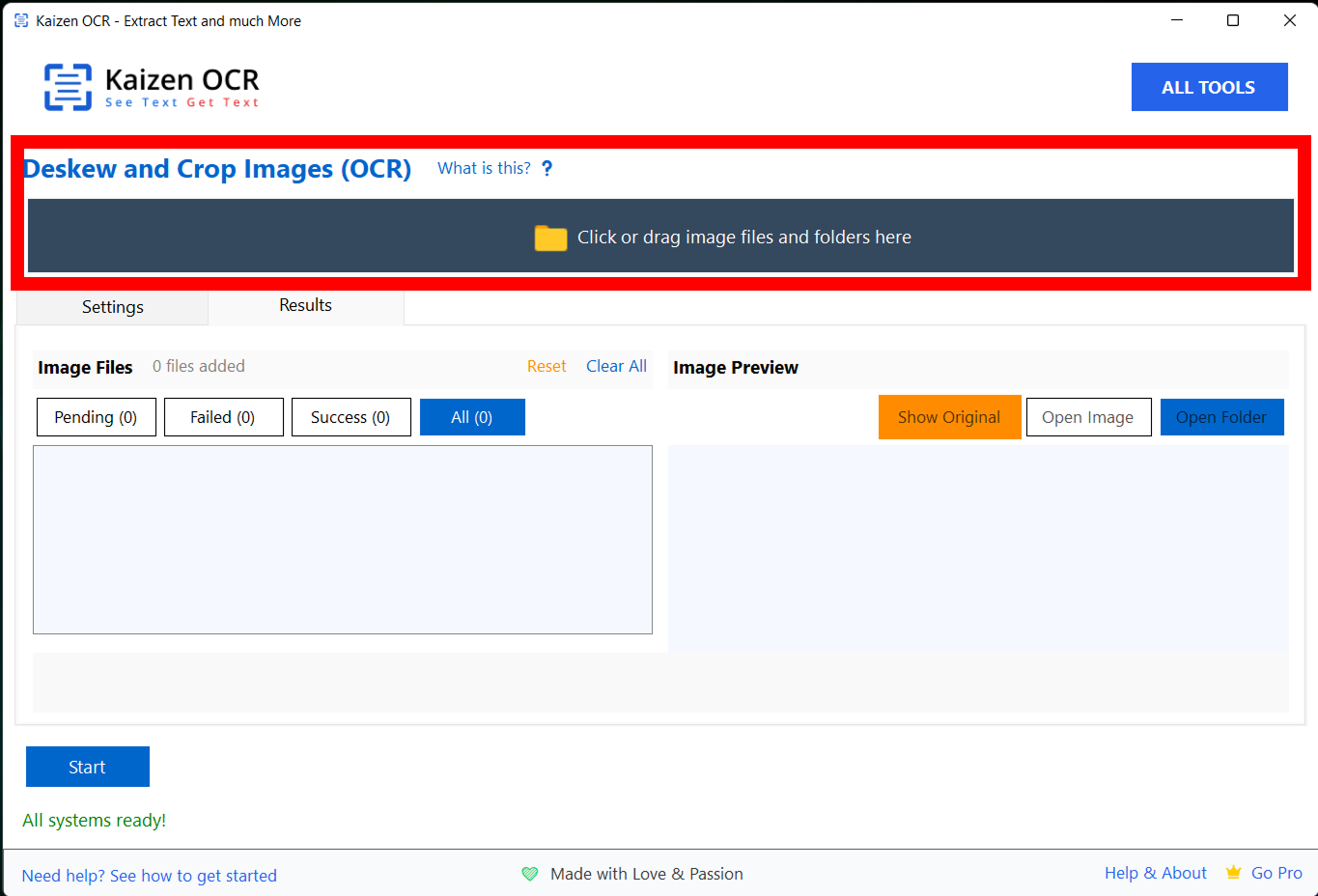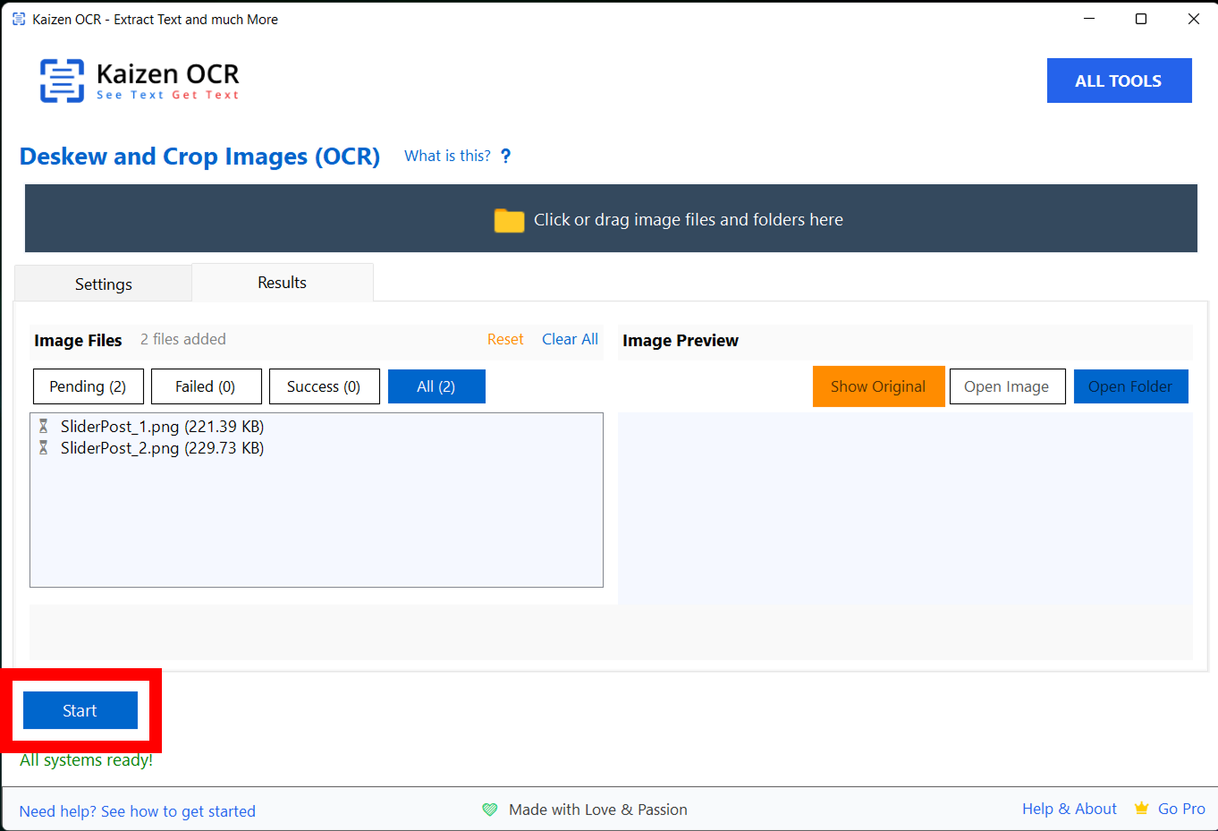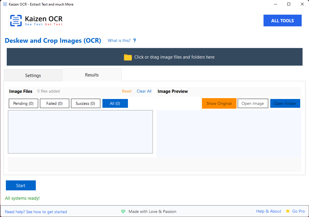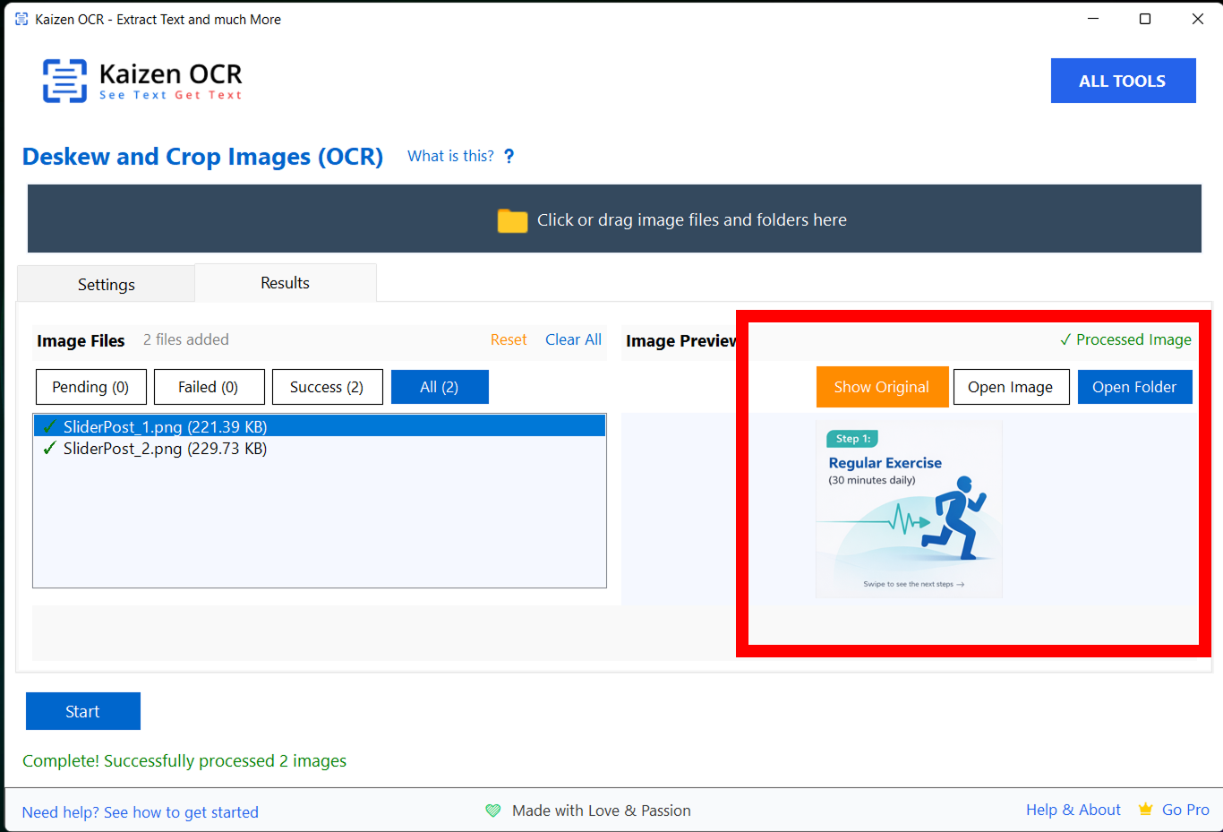 The Crop & Deskew feature automatically fixes tilted or misaligned images and removes unwanted borders to make documents clean and ready for OCR. Simply add your image, enable Auto-Deskew and Auto-Crop, then click Start to straighten and align the document instantly.