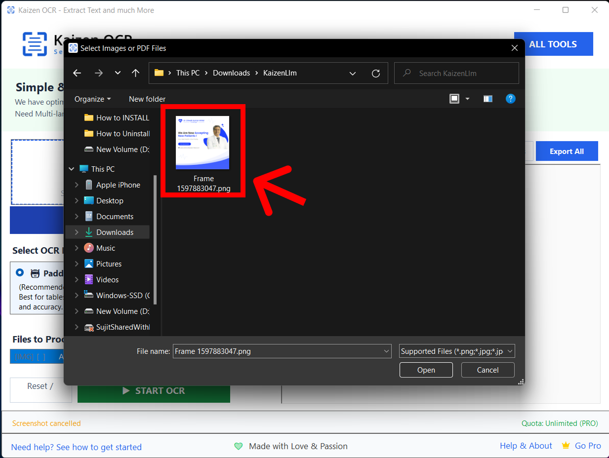 From the Kaizen OCR dashboard, click on the Easy OCR tile to open the Easy OCR module.