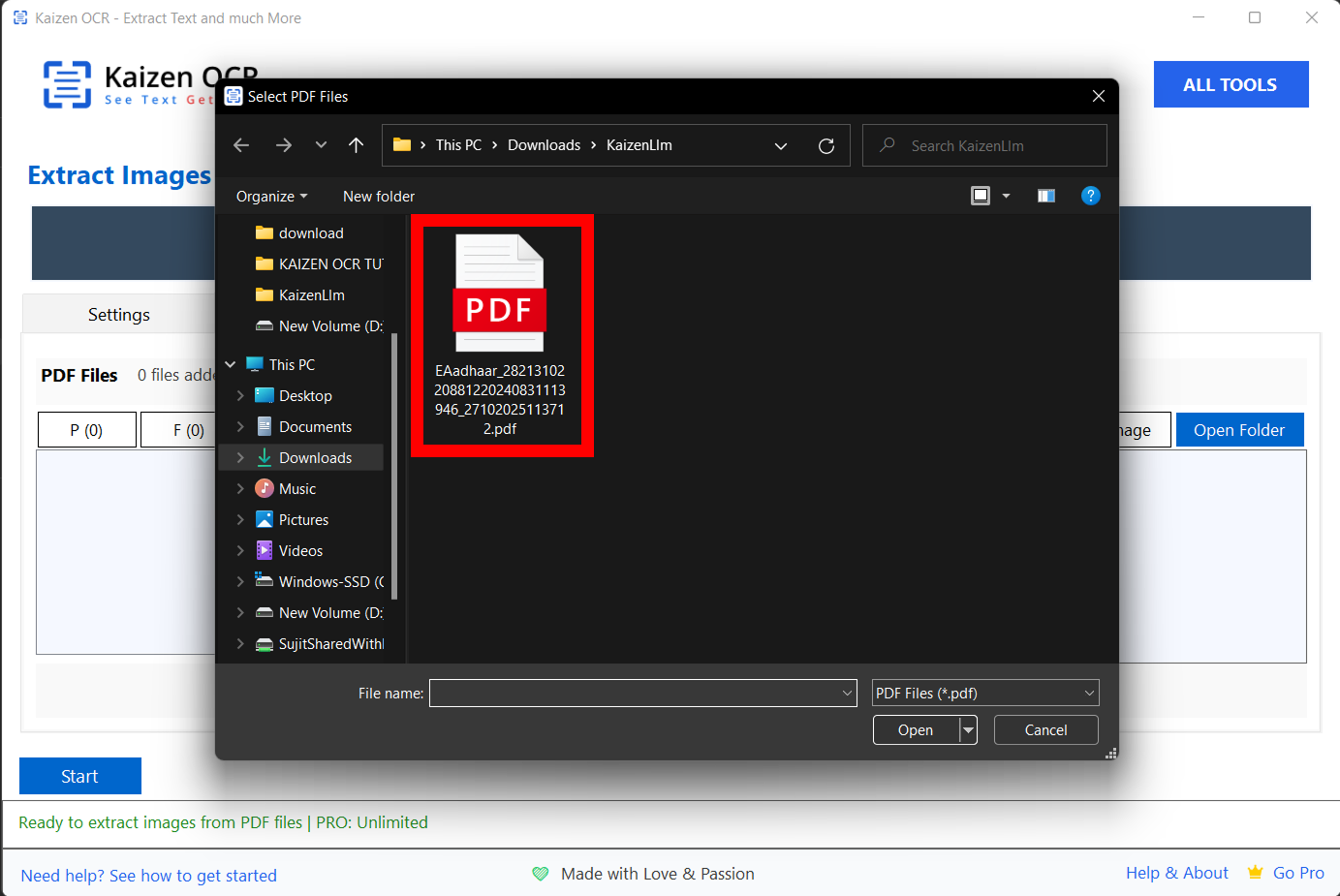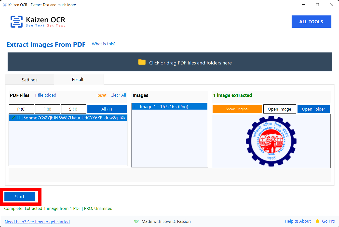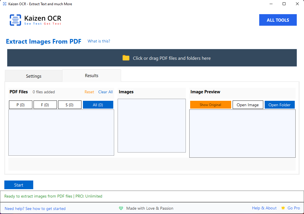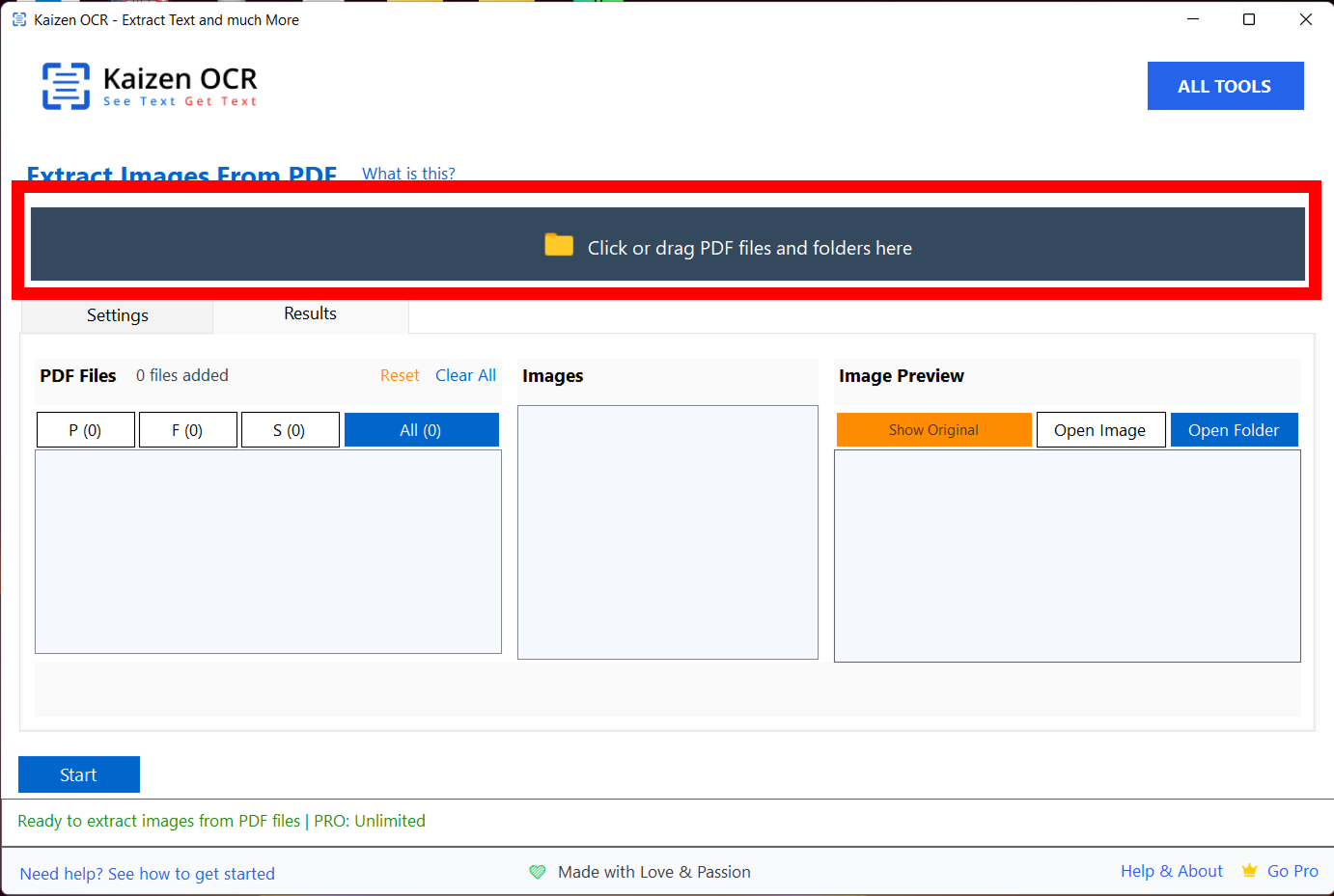 From the Kaizen OCR dashboard, click on the Extract Images from PDF tile.