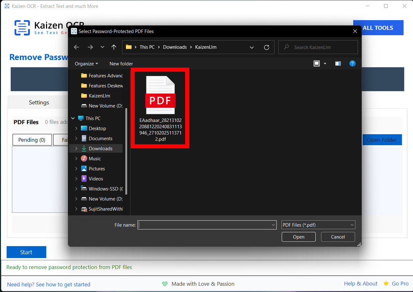 From the Kaizen OCR dashboard, click on the PDF Remove Password tile.