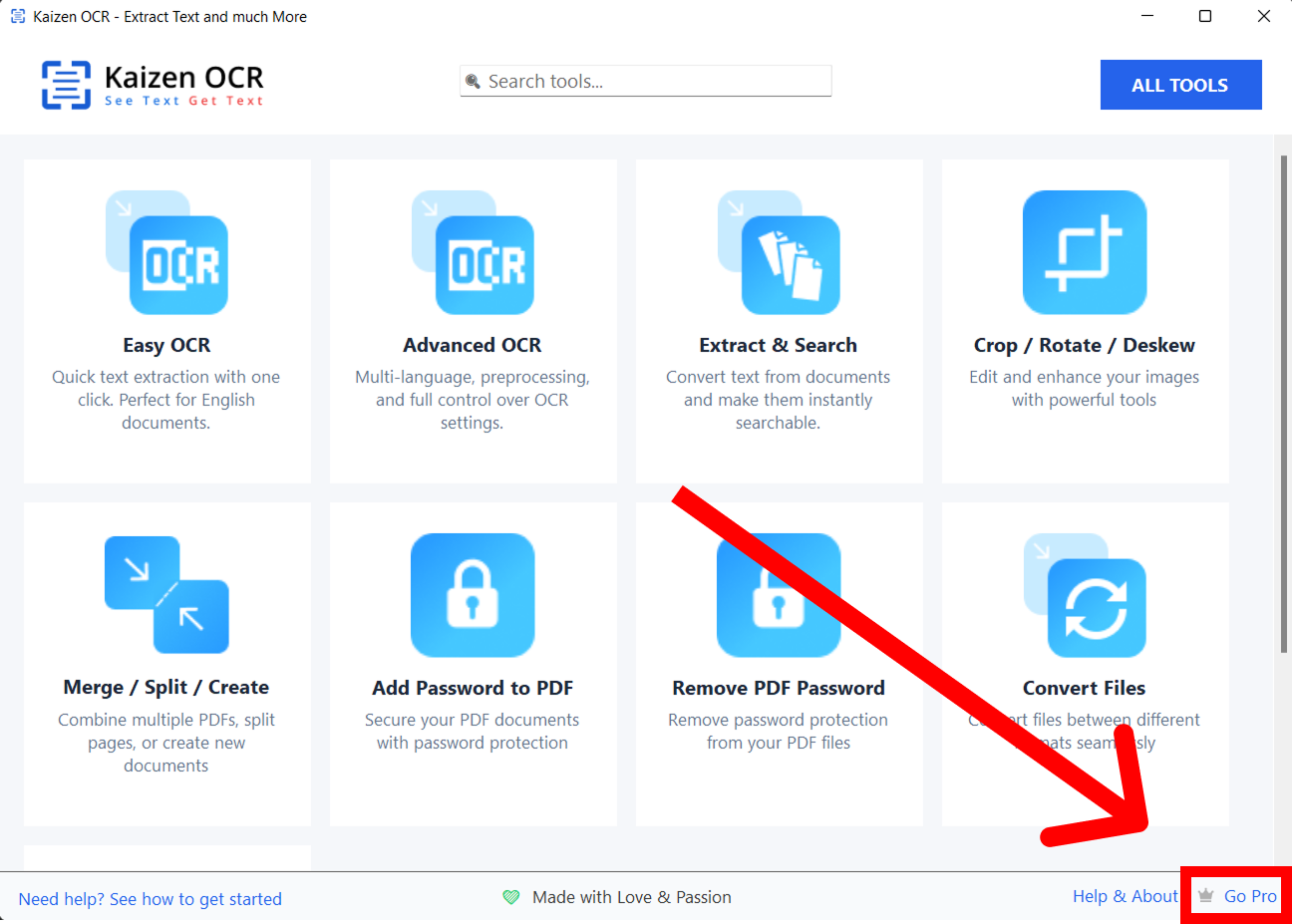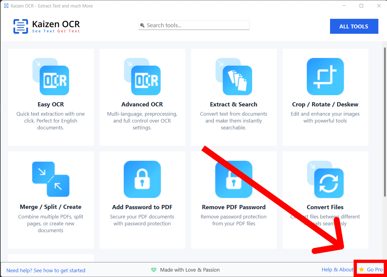 Upgrade from the free version to Kaizen OCR Pro to unlock unlimited usage of all features. License activation requires a one-time internet connection.